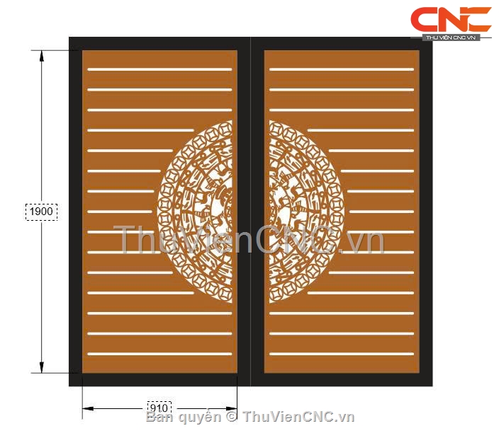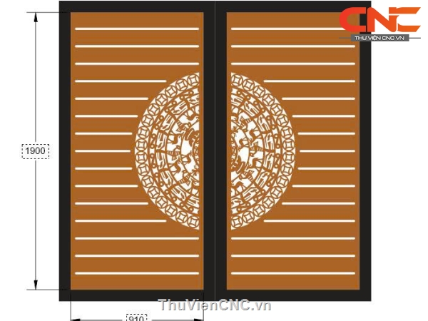 Thiết kế cắt cổng 2 cánh trống đồng đơn giản cnc