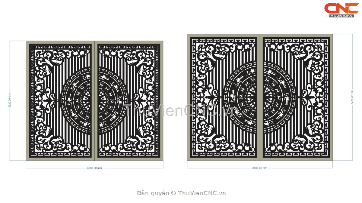Thiết kế cắt cổng 2 cánh trống đồng dxf