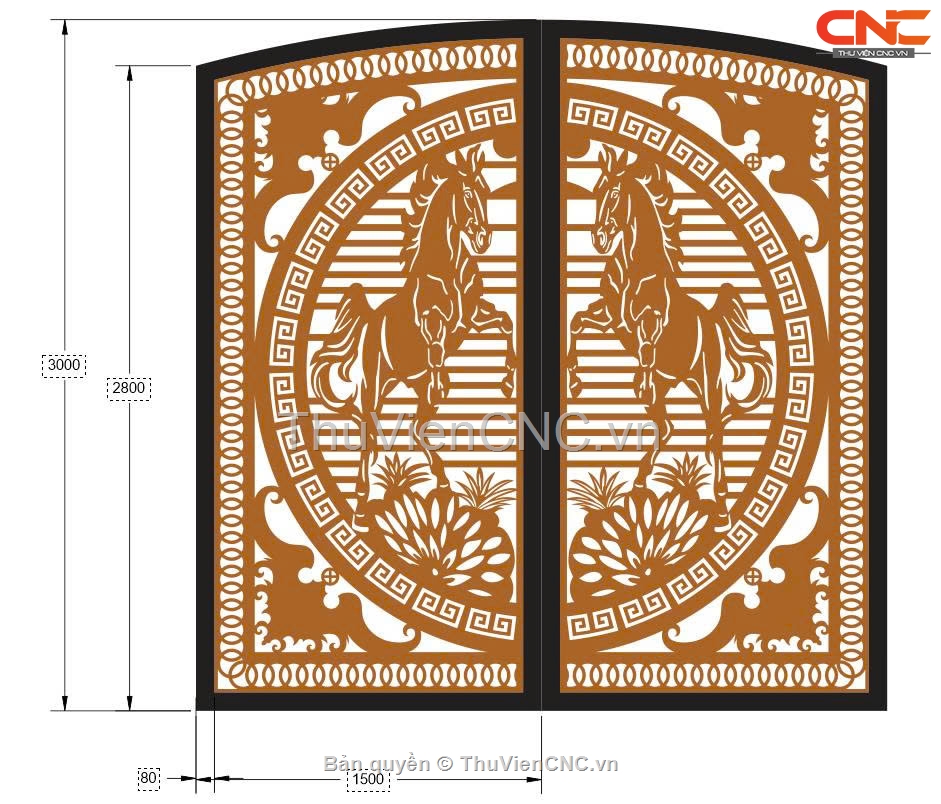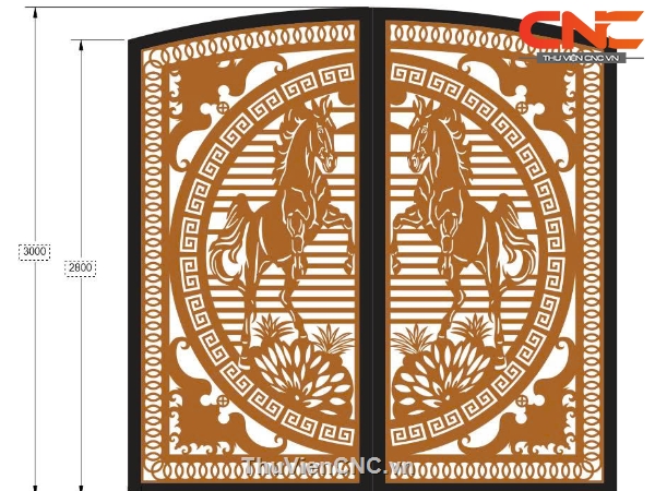 Thiết kế cnc cổng 2 cánh ngựa đẹp