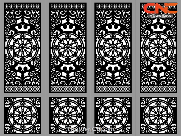 Model dxf cnc cổng 4 cánh trúc có ô thoáng