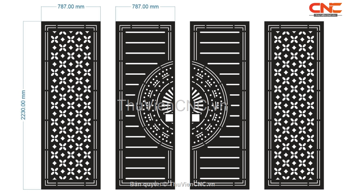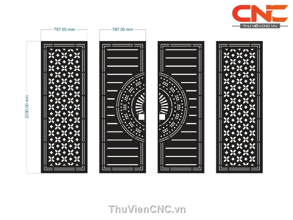 Thiết kế cnc cổng 4 cánh hoa văn trống đồng dxf