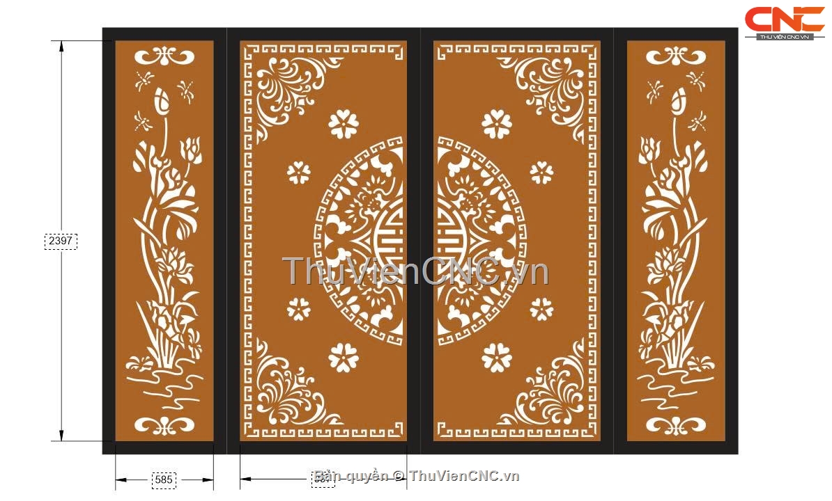 Thiết kế cnc cổng 4 cánh sen và trống đồng
