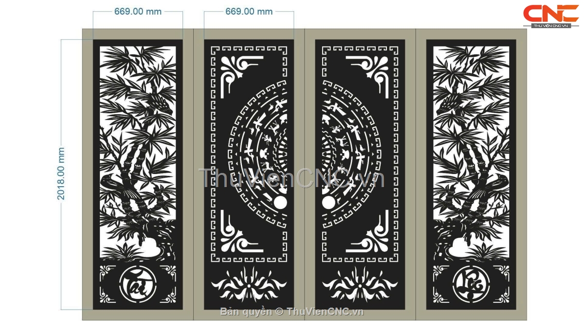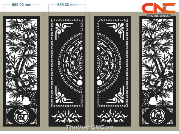 Thiết kế cnc cổng 4 cánh tài lộc cây trúc
