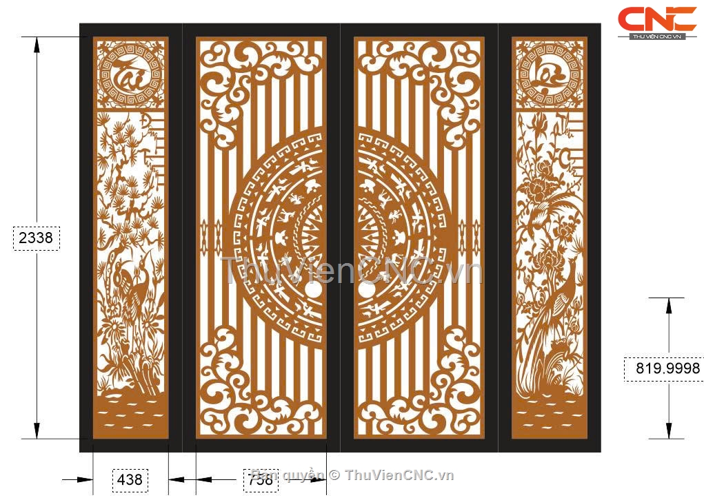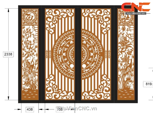 Thiết kế cnc cổng 4 cánh tài lộc trống đồng