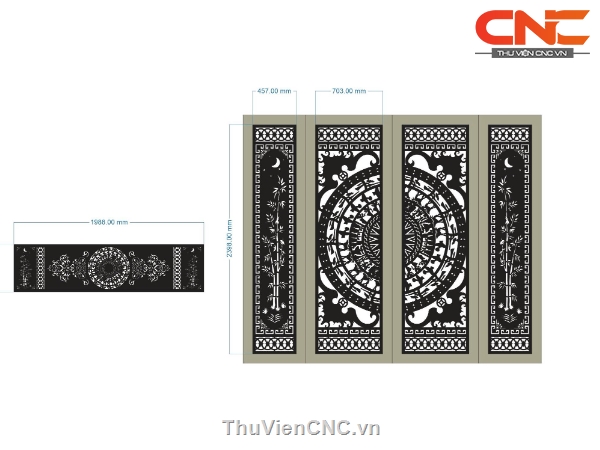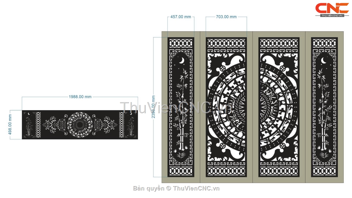 Thiết kế cnc cổng 4 cánh trống đồng trúc và hàng rào