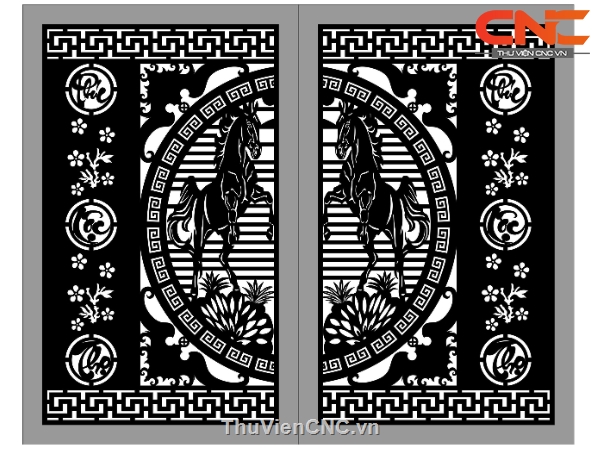 Thiết kế cnc cổng ngựa 4 cánh phúc lộc thọ