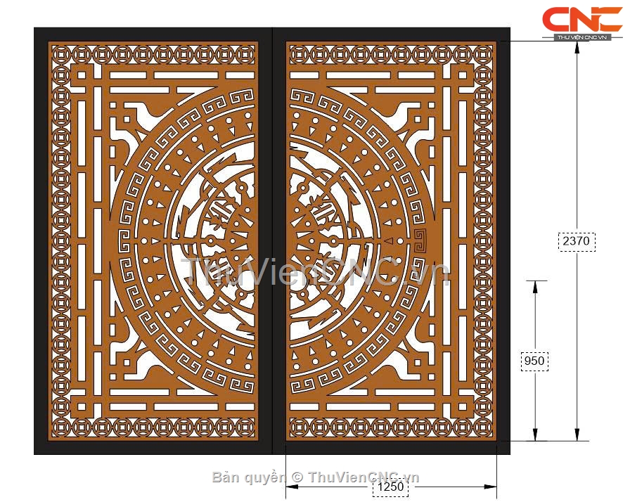 Thiết kế cổng 2 cánh trống đồng dơi cnc