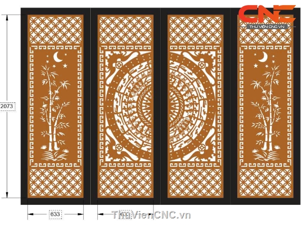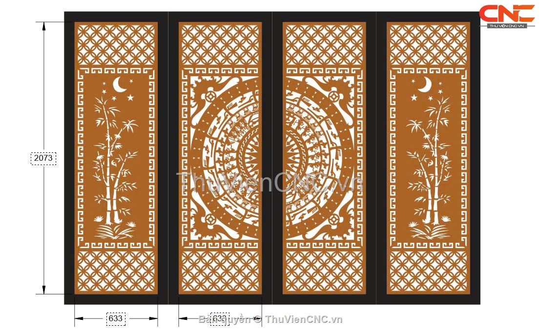 Thiết kế cổng 2 cánh trúc dơi trống đồng cnc