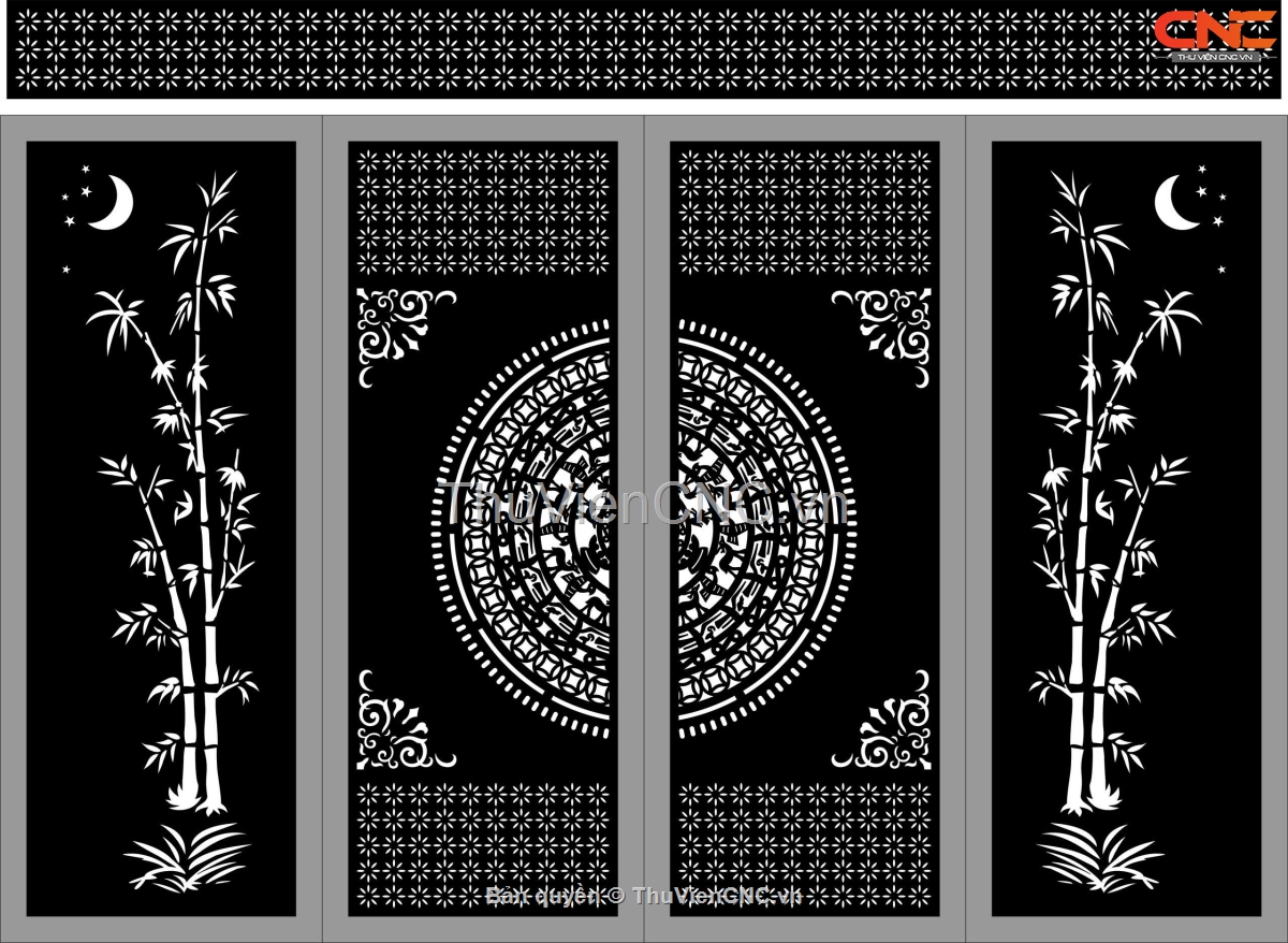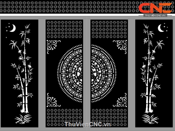 Thiết kế cổng 4 cánh cây trúc đẹp cnc