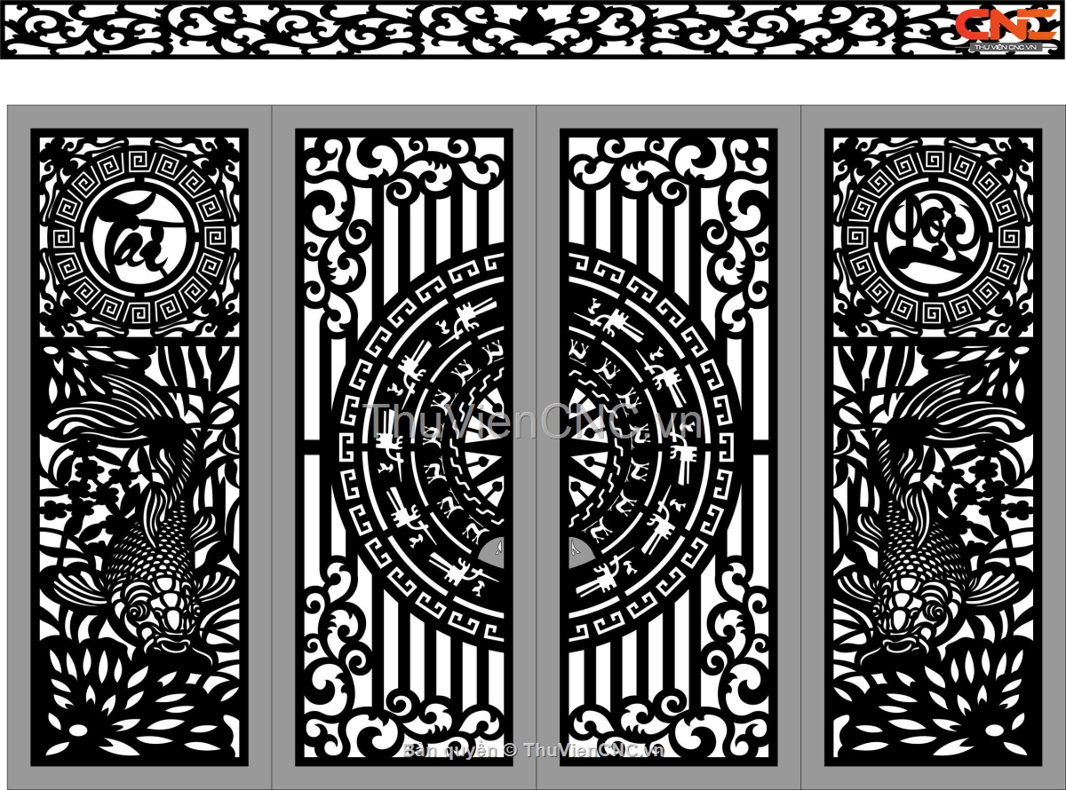 Thiết kế cổng 4 cánh tài lộc cnc model dxf