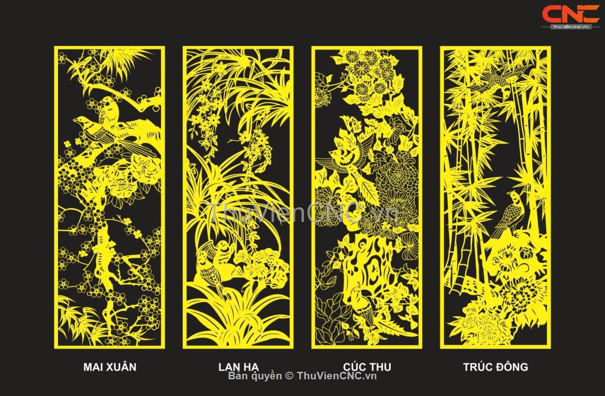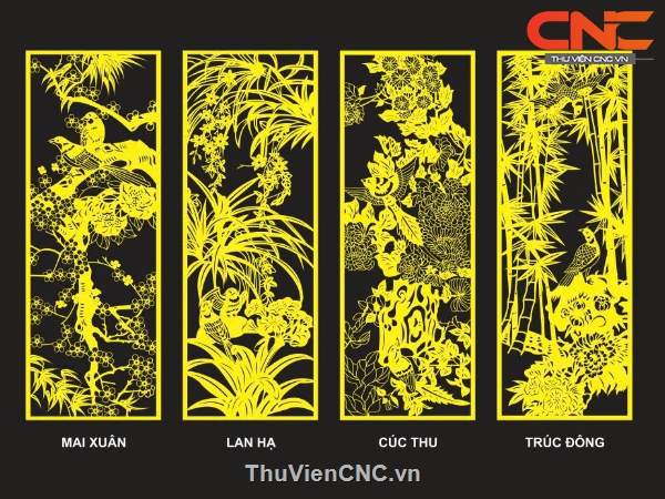 Bộ 04 file Tranh tứ quý ( MAI XUÂN - LAN HẠ - CÚC THU - TRÚC ĐÔNG).. File chuẩn CNC, siêu nét và đẹp...